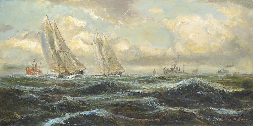 6) Schooners Race Past the Sambro Lightship and Naval Vessels