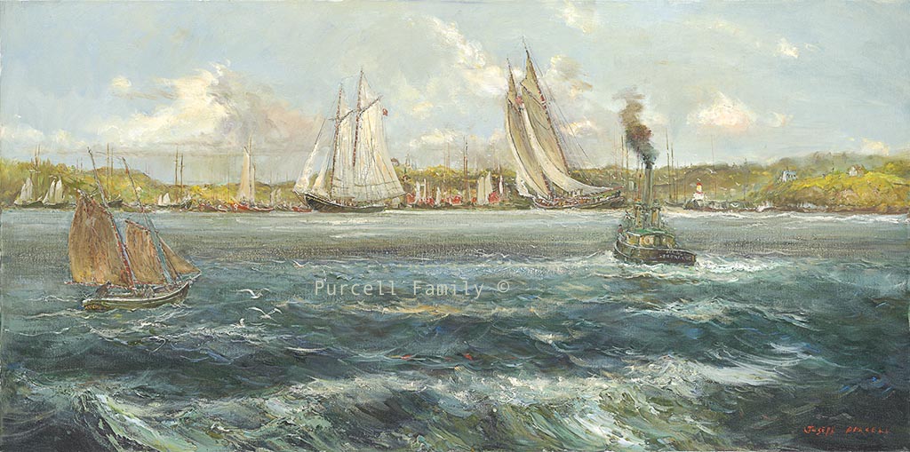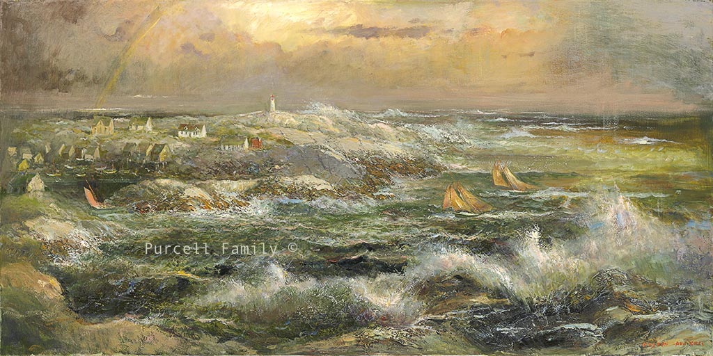 High quality reproduction giclées from original Nova Scotia themed oil paintings by Joseph Purcell. These giclées are printed on canvas and stretched on a deep wooden gallery stretcher, with mirrored edges. No frame is needed as this can be hung directly on the wall.