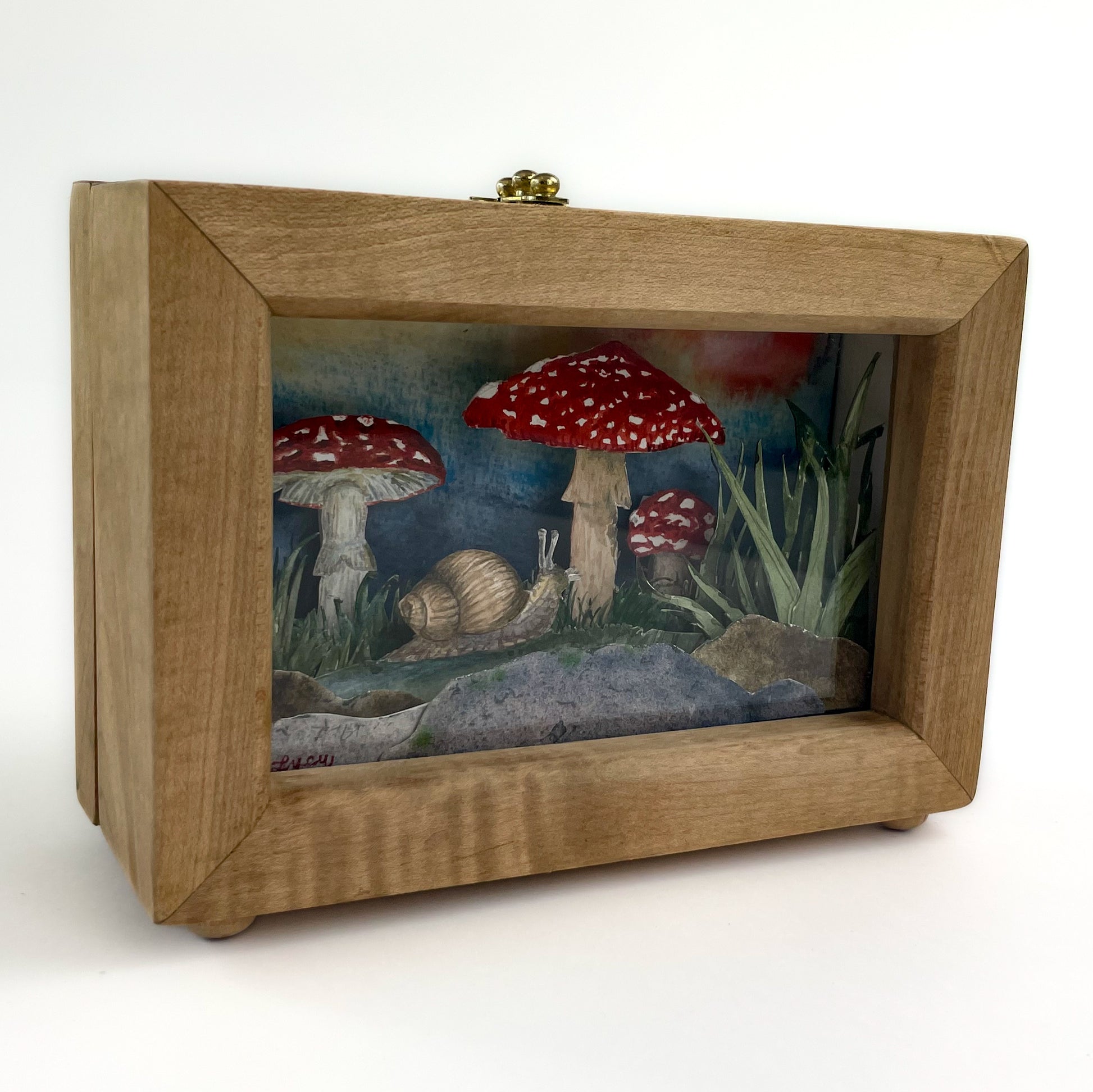 Forest floor 3-Dimensional Diorama in Watercolour by Lucy Newton, in a hand crafted maple box by John Newton.