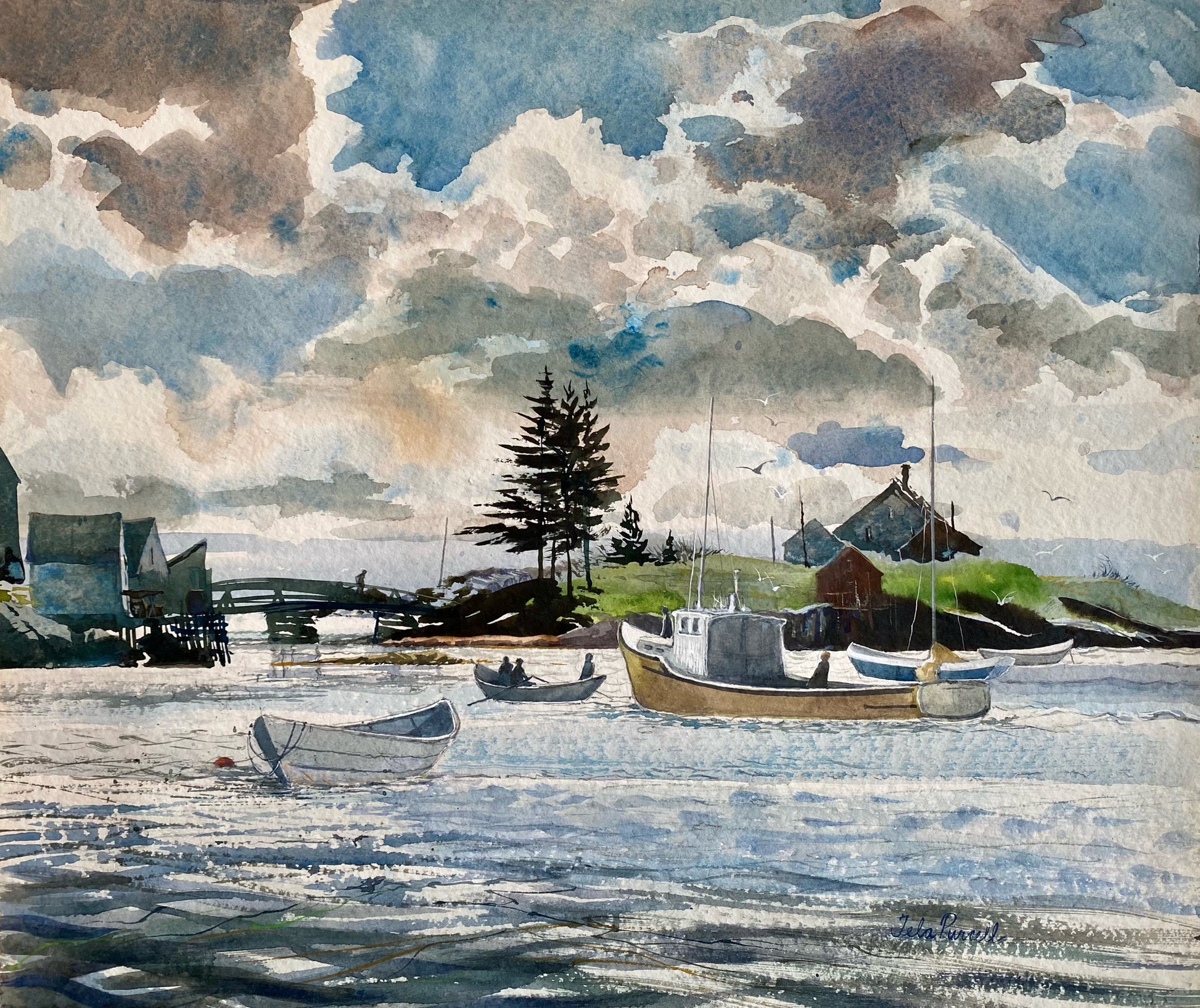 A print from an original watercolour by Tela Purcell Wilneff’s Islans Bridge, Nova Scotia